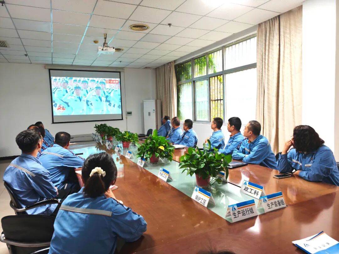 中鋁山西新材料黨委書記、董事長,中鋁山西鋁業執行董事王辛成等兩公司在廠的領導班子成員、機關部室各級管理人員在辦公樓集中收看;公司統戰人士、青馬學員、新入職大學生齊聚會議中心收看,在莊重氛圍中感悟時代使命,厚植愛國情懷。