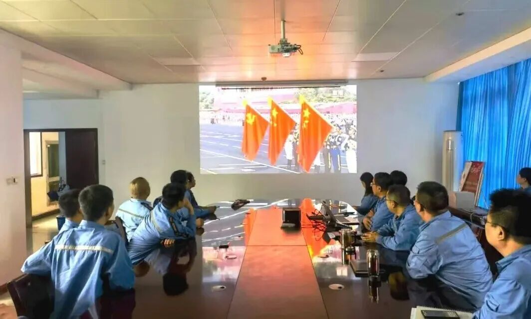 上午九點整,在80響禮炮聲中,紀念大會正式拉開帷幕,全體與會人員全神貫注觀看直播,認真聆聽習近平總書記重要講話,深刻體會抗戰精神的偉大力量。閱兵儀式直播畫面里,一排排受閱官兵身著筆挺軍裝、斗志昂揚闊步走過天安門廣場,充分展現出中國軍人的鐵血擔當與過硬作風;一輛輛先進的坦克、導彈裝甲戰車轟鳴著駛過長安街,盡顯鋼鐵洪流的氣勢;一架架戰機呼嘯而過,在藍天劃出壯麗航跡;一款款無人機等新型裝備驚艷亮相,直觀呈現出我國國防實力的跨越式發展。現場觀看的企業干部員工發出陣陣贊嘆,身為中國人的自豪與對祖國未來發展的熱切期待油然而生。